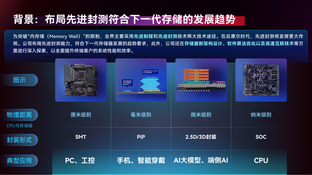 通過采用3D封裝、2.5D封裝等前沿技術,佰維存儲能夠幫助客戶顯著降低產品功耗,提升性能,并在算力等領域提供定制化封測服務。孫成思表示,先進封測技術不僅是市場需求的驅動,更是未來行業發展的必然方向,佰維存儲將通過這一布局,進一步鞏固其在存儲行業的領導地位。