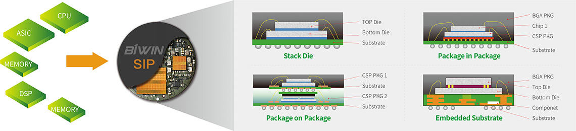 SiP兼具尺寸與開發靈活性優勢,在計算機、汽車電子、醫療電子、軍事電子、消費類電子等領域得到廣泛運用。SiP設計具有良好的電磁干擾抑制效果,對系統整合客戶而言可減少抗電磁干擾方面的工作。它使用更少的電路板空間,讓終端產品設計擁有更多想象空間;具有更輕薄短小和時尚個性化的外觀設計,提高了產品的附加值。特別是在萬物互聯時代,SiP可以實現“更合時宜”的高集成度水平的單芯片硅集成,這也是佰維致力于以SiP封測為物聯時代賦能的意義。 ?
